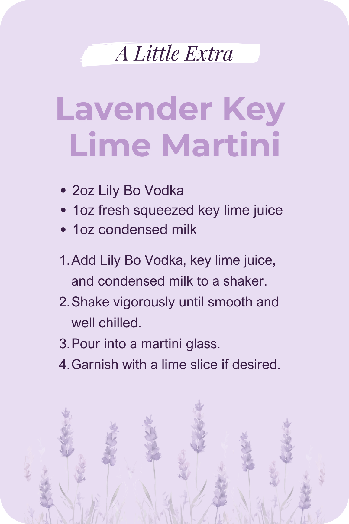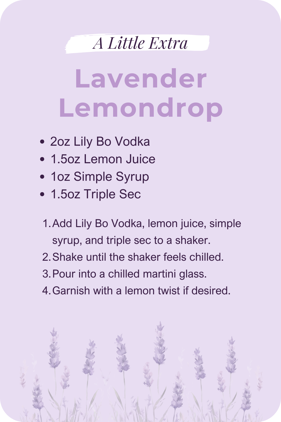Born on Wild Daisy Lavender Farm, Lily Bo Vodka is crafted with a simple intention: to make beauty effortless.